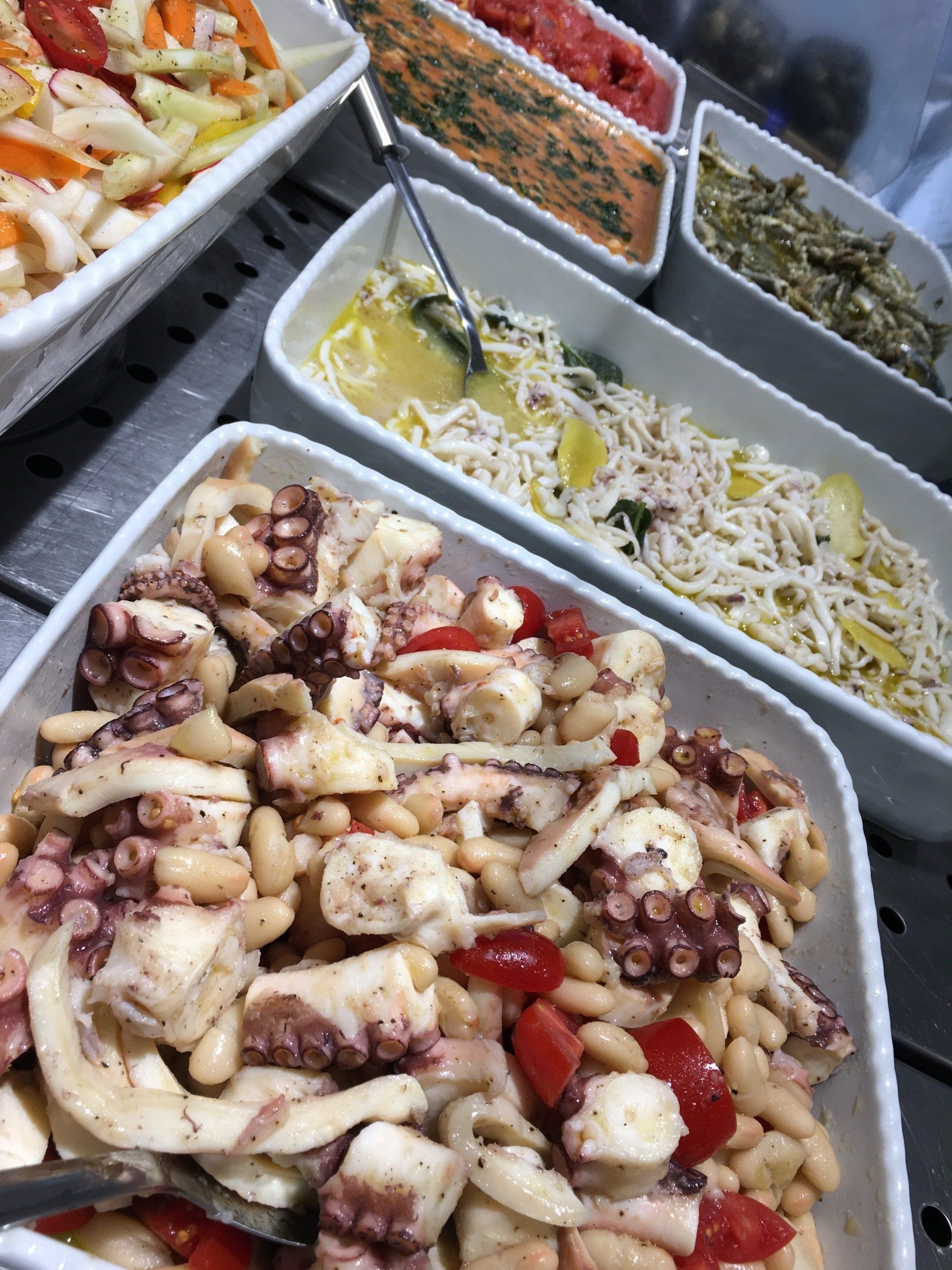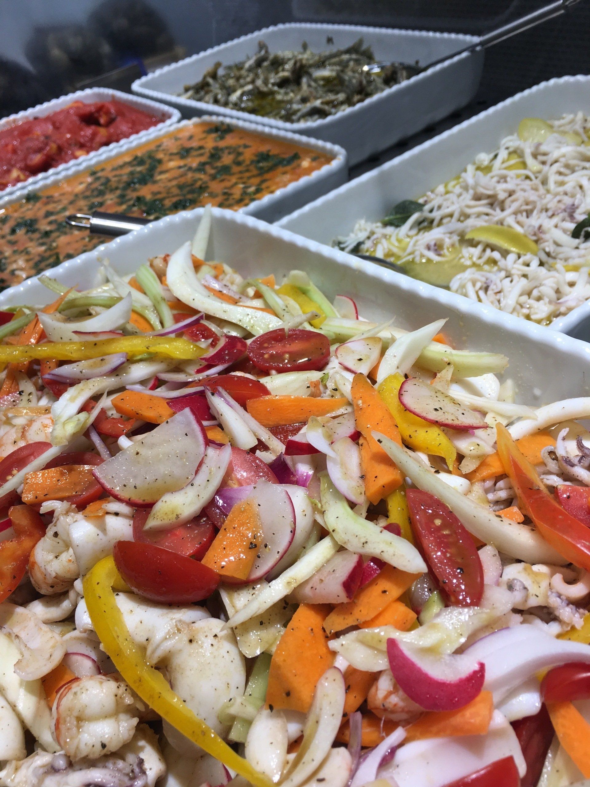 La nostra gastronomia propone i piatti tipici del mediterraneo , ogni giorno potrete ordinare catalane , fritti misti , sughi pronti , potrete scegliere direttamente dal nostro banco i pesci freschi che preferite e farveli cucinare al momento oppure aquistare il preparato del giorno , scelto in base alla stagione dei prodotti del mare e della terra.
